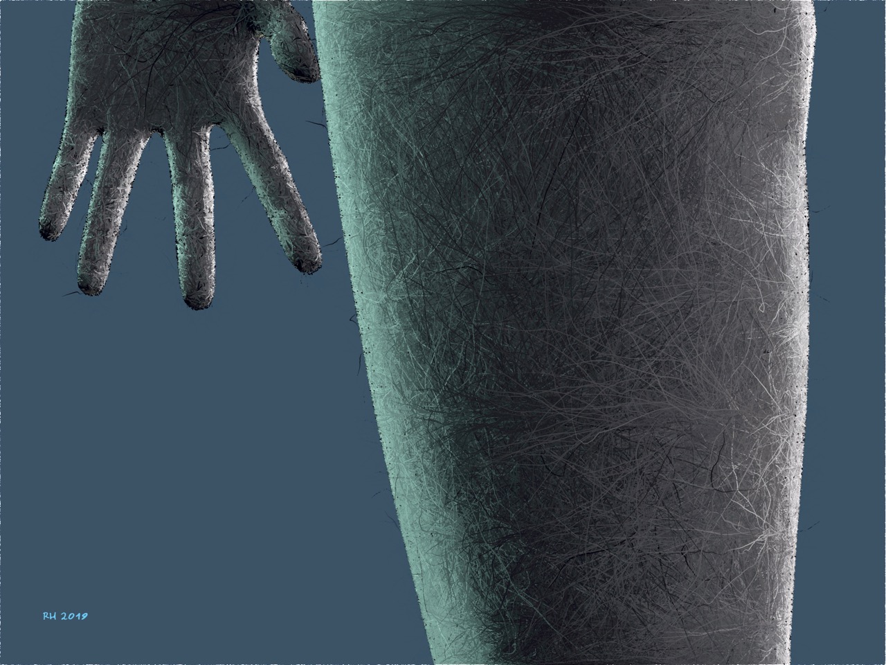 Arbeiten mit Acryl, Graphitstift, Buntstift, Pigmentprint auf Leinen, Acrylglas und Papier.